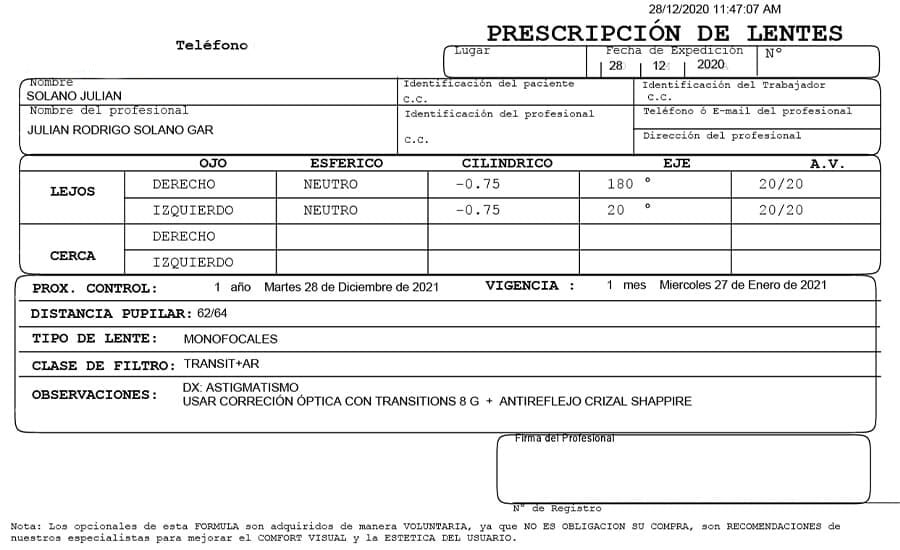 Si es la primera vez que lees tu fórmula oftálmica, debes consultar con un profesional con el fin de no generar un